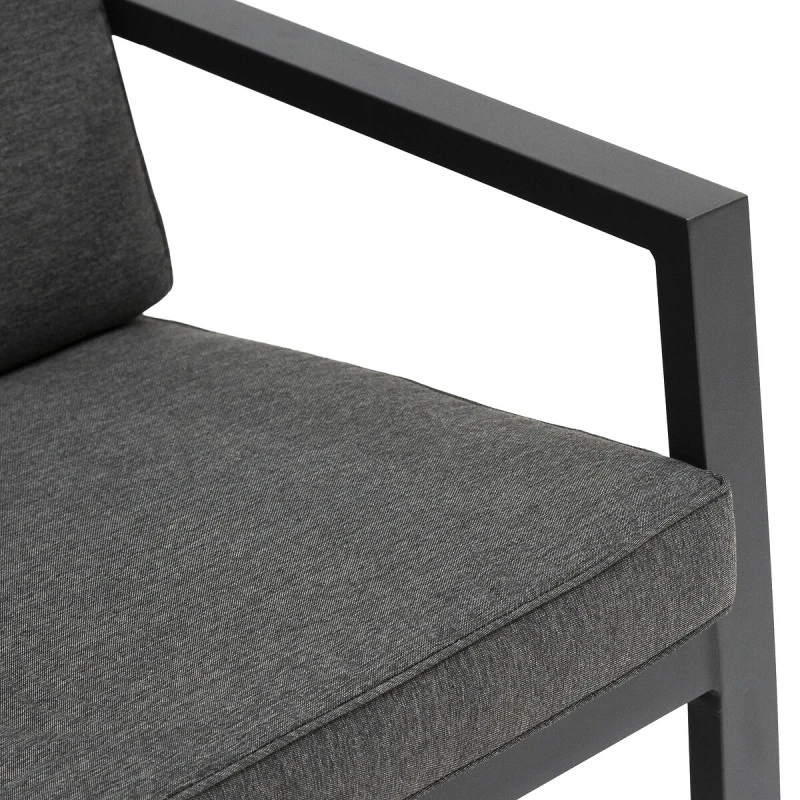 Sa haute résistance finira de vous convaincre : le canapé dispose d’une structure en aluminium traité époxy antirouille et de coussins d’assise en polyester 220 g/m² déhoussables et traités contre la décoloration.