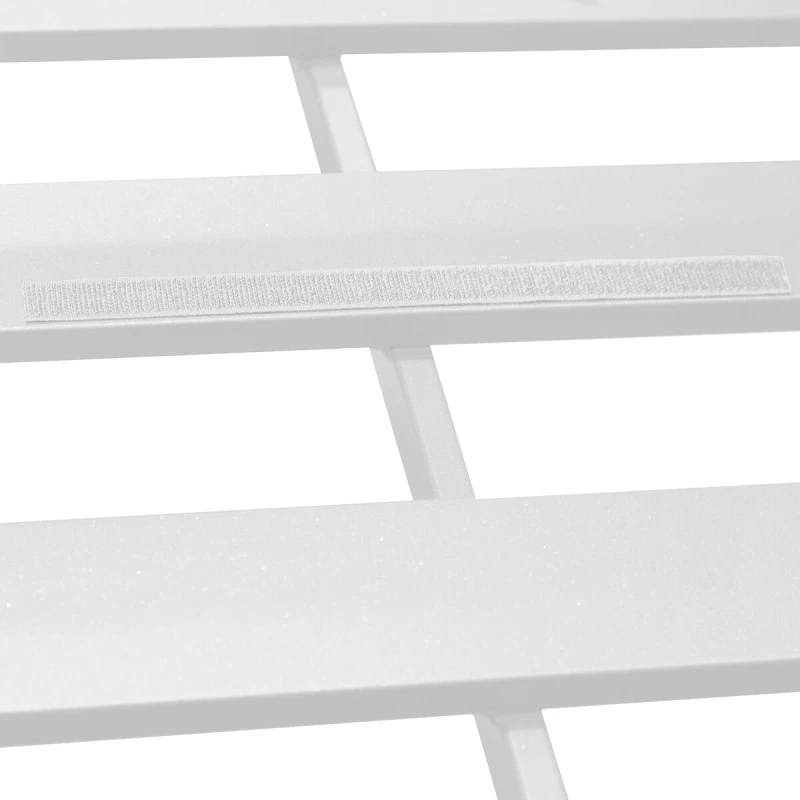 La structure est en aluminium traité époxy antirouille. Les coussins polyester 275 g/m² sont déhoussables pour un entretien facile et traités déperlants permettant à l’eau de glisser sans pénétrer dans la matière.