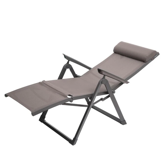 Ce fauteuil est le mobilier idéal pour vous relaxer en extérieur. Facile d’utilisation, il est muni d’accoudoirs, d’un appuie-tête amovible et d’un dossier inclinable en 8 positions pour un confort personnalisé.