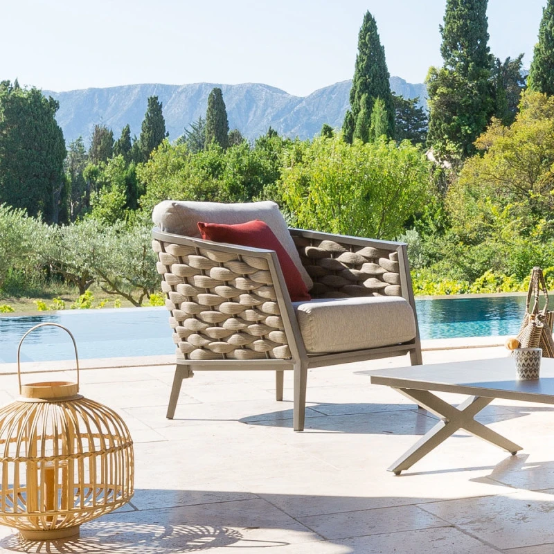 Créez votre espace extérieur convivial à votre goût en composant votre salon avec ce fauteuil et les autres éléments de la collection Embruns de marque Hespéride.
