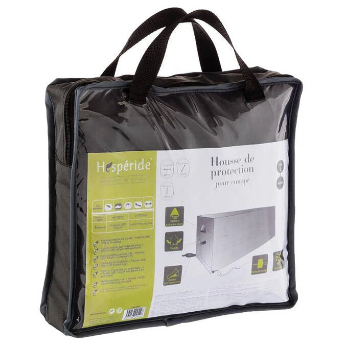 L’eau glisse sans y pénétrer sur cette housse pour canapé en polyester traité déperlant. L’air à l’intérieur circule idéalement grâce à sa ventilation, empêchant ainsi la formation d’humidité. Il vous sera très facile de manipuler votre accessoire équipé de poignées ergonomiques, de bandes à scratch et d’un lien de serrage.