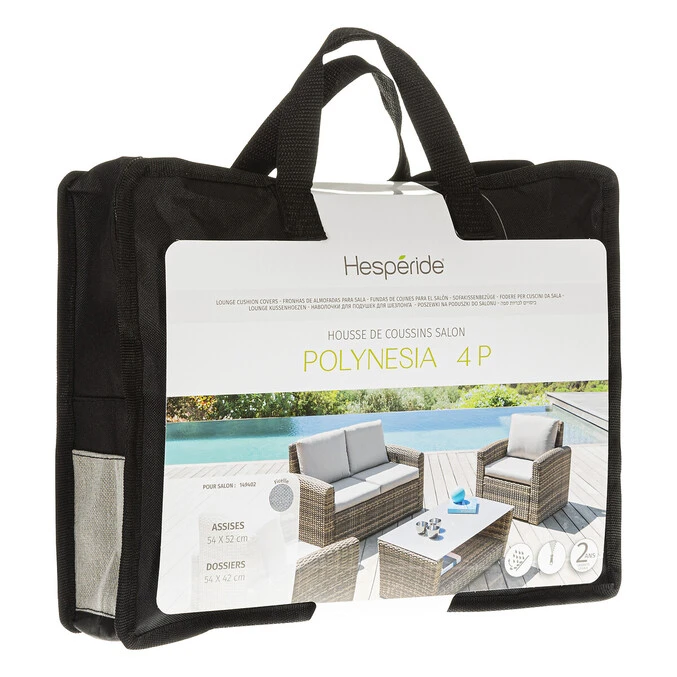 Faites pour le salon de jardin « Polynésia » 4 places, ces housses de remplacement lui donneront tout de suite une seconde jeunesse. Le traitement déperlant permettra aux gouttes de pluie de ne pas pénétrer dans la matière. Amovibles, ces accessoires vous faciliteront grandement leur entretien.