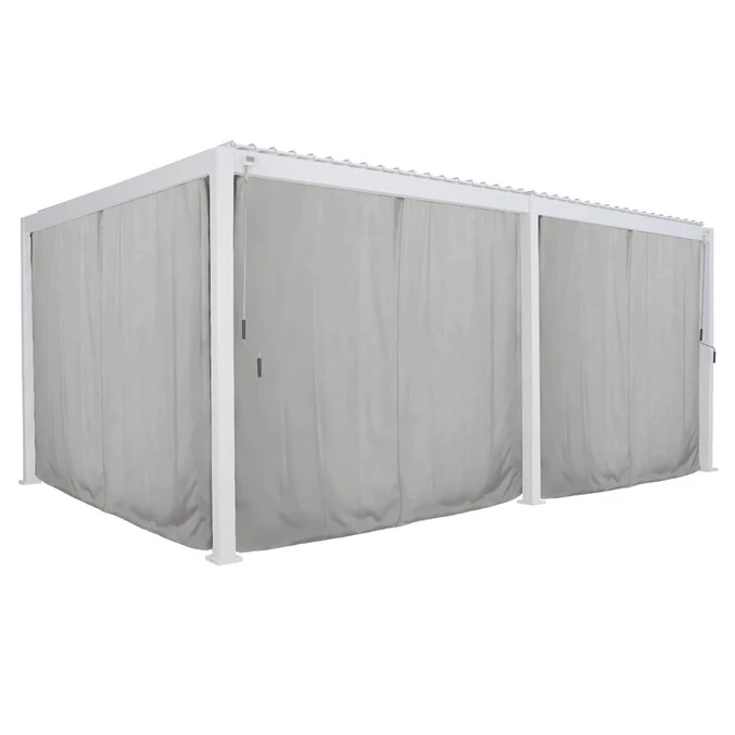 Le kit de rideaux et moustiquaire pour pergola grand modèle « Evora » est conçu pour vous accompagner durant la belle saison. Durant l’hiver, nettoyez et rangez les éléments dans un endroit abrité.