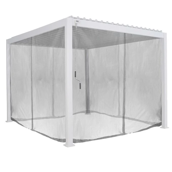 Ce kit est composé de quatre rideaux, quatre moustiquaires et huit rails, à installer sur la structure de la pergola « Evora ». Vous profiterez de diners conviviaux en toute quiétude.
