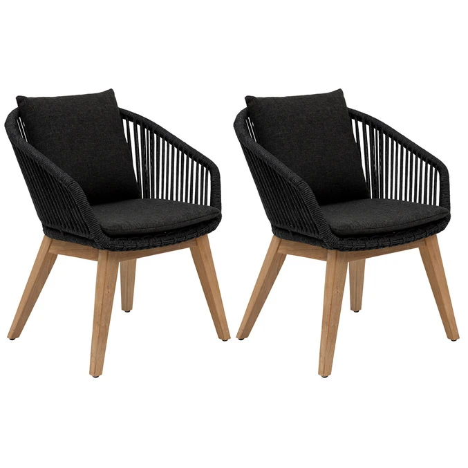 Très modernes, les 2 fauteuils de jardin « Batam » se caractérisent par une assise et un dossier en cordages. Leurs pieds est en bois certifié FSC® issu de forêts gérées de façon responsable. La chaîne de production, allant du producteur au consommateur, est également certifiée FSC®. Idéals autour d’une table conviviale, ces sièges offriront un excellent confort à vos convives.