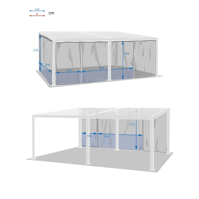 Pour équiper la tonnelle « Avila » grand modèle à toit incliné réf. 165711, ces rideaux moustiquaires se composent de 8 pièces à assembler. Celles-ci sont réparties sur 2 côtés taillés en diagonale pour intégrer la pente du toit et des panneaux avant et arrière de hauteurs différentes.