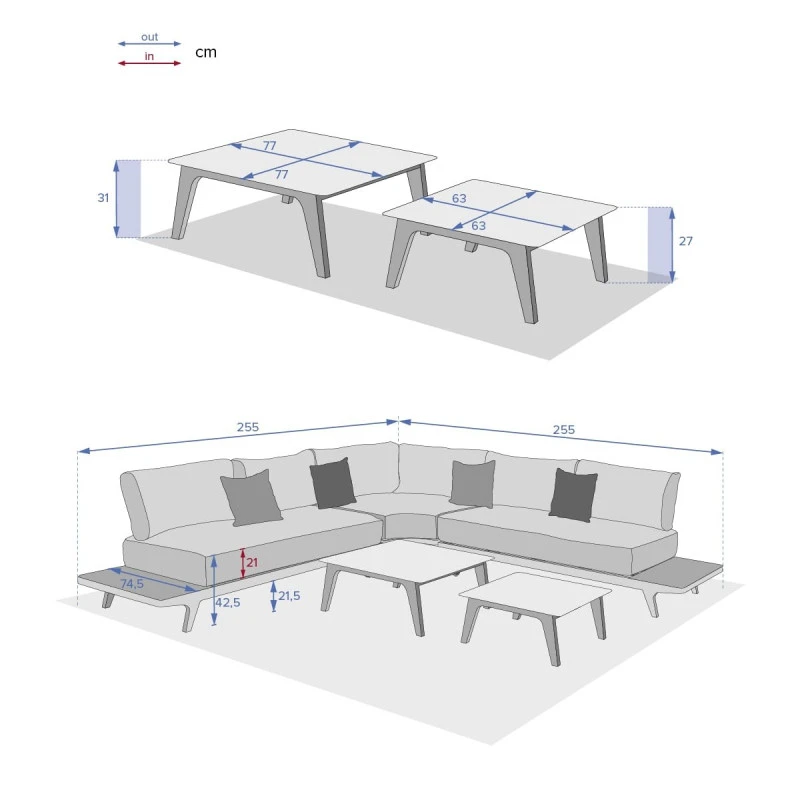 Sa structure est en aluminium traité époxy pour une résistance optimale à l’extérieur. Les plateaux des tables et tablettes sont en verre revêtement céramique.