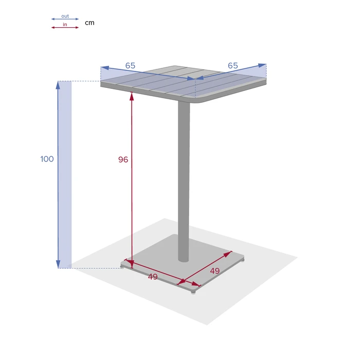 Cette table haute est réalisée en acier recouvert d’une peinture époxy et traité par électrodéposition. Elle résiste aux UV et peut être entretenue avec un nettoyant pour métaux proposant une protection contre la corrosion.