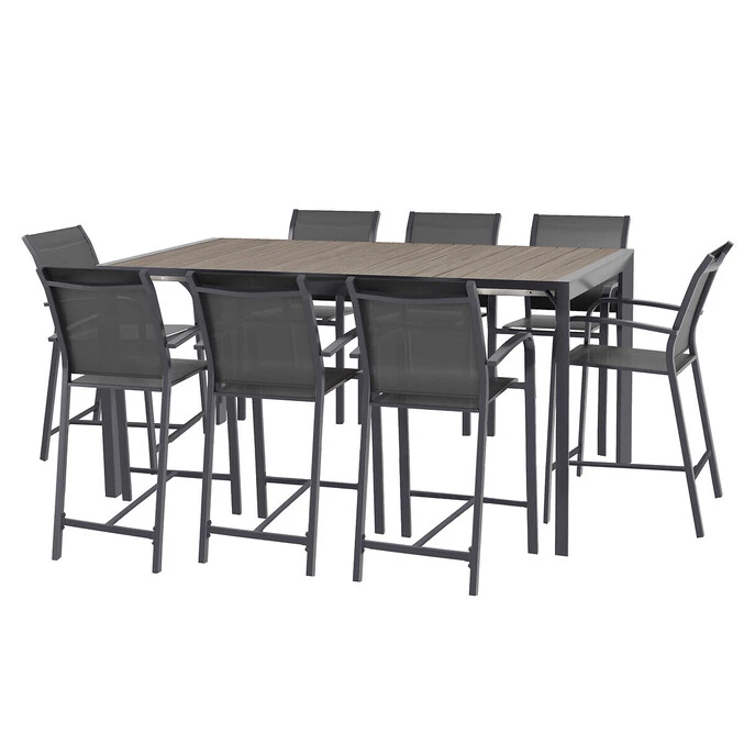 Avec ses lignes sobres et élégantes, la table haute extensible « Evasion » séduit par sa structure en aluminium et son plateau aspect bois dont vous ne vous lasserez pas.
