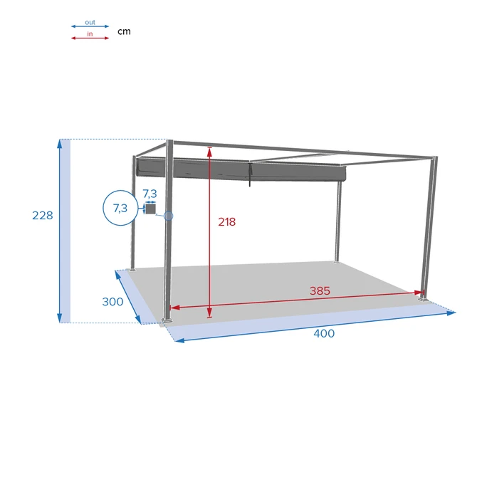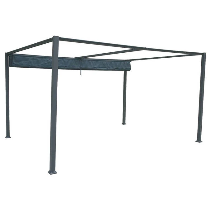 La toile en polyester épais de 200 g/m² déperlant coulisse sur la structure, permettant d’ajuster l’ouverture en fonction de la météo ou de l’heure de la journée. Repliez-la en cas de fortes pluies et stockez-la au sec pendant l’hiver.