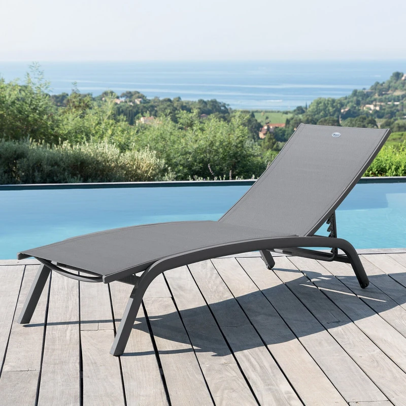 Profitez du soleil avec ce transat Bonao coloris ardoise et graphite de la marque Hespéride.