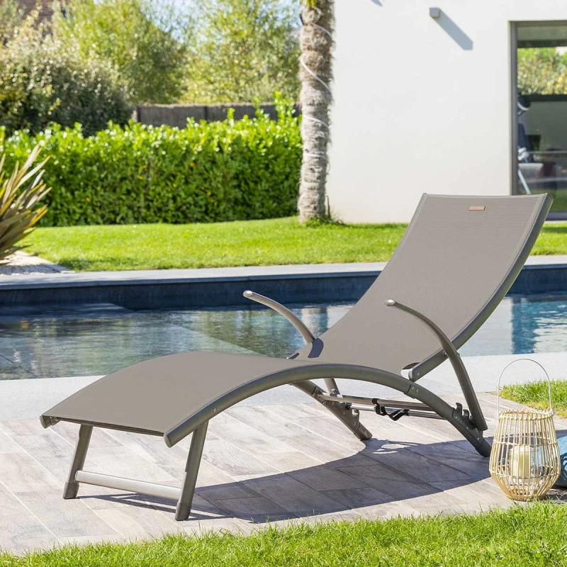 Profitez du soleil grâce au transat pliable multi-positions Samba coloris noisette/graphite de la marque Hespéride.